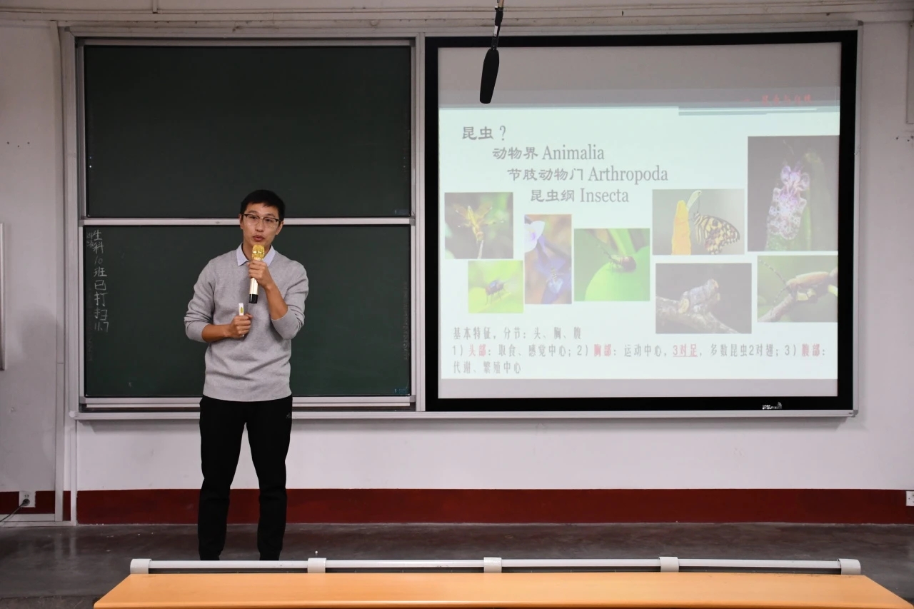 为贯彻落实国家对科普教育的重要指示精神,进一步加强电影网站 美育工作,培育和提升学生对自然科学的兴趣和探索精神,同时培养他们尊重生命、热爱自然的道德情怀,11月10日,农业与生物学院于东校区2号教学楼516教室举办“博雅大讲堂:昆虫分类——热爱与自然之美”活动,于帅老师担任主讲。