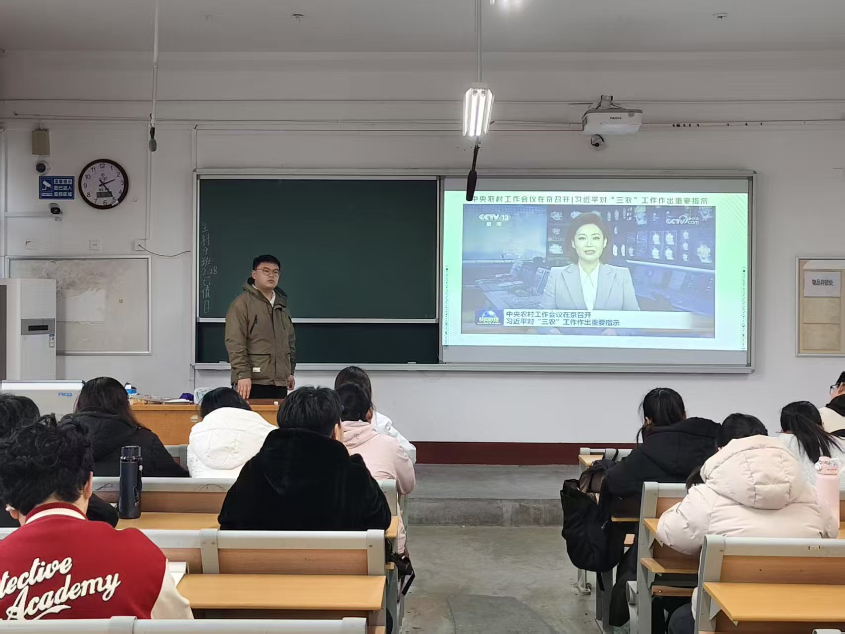 读书会现场的学习氛围浓厚。主持人播放了关于聚焦中央农村工作会议的新闻专题视频,观看结束后,同学们积极参与讨论,分享了关于中央农村工作会议和“三农”工作的深刻理解。答题互动环节中,大家就中央农村工作会议中强调的保障粮食安全的具体举措有那些等问题进行讨论,并纷纷表示以后将认真学习专业知识,为“三农”建设贡献自己的一份力量。