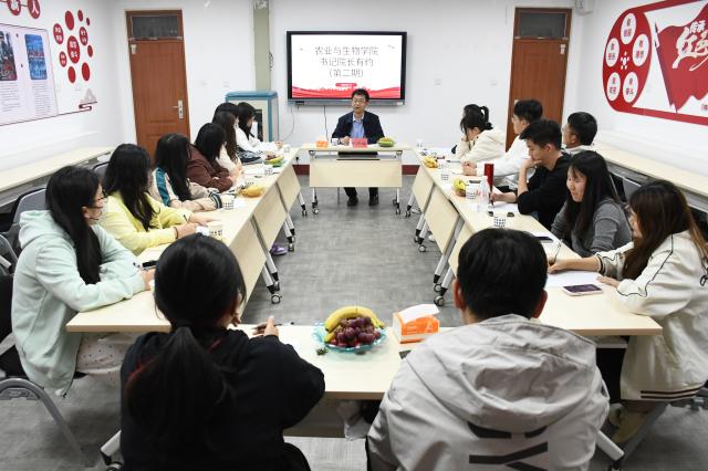 为了加强师生交流互动,提升教育教学服务质量,4月16日,农业与生物学院“书记院长有约”第二期活动在学院一站式“先锋”学生社区举办,院长贾泽峰与16名学生代表进行了亲切的座谈,深入了解学生在学业发展过程中的所思所想,共谋发展之策,共绘成长蓝图。