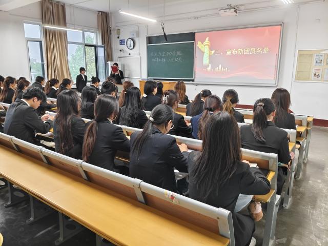 仪式在庄严的国歌声中拉开帷幕,全体人员庄严肃立,齐唱国歌,激昂的旋律点燃了在场每一位青年的爱国热情。随后,主持人宣读了新一批入团成员名单,37名同学光荣加入中国共产主义青年团。这一时刻,承载着他们对共青团组织的向往与追求,也标志着他们将肩负起新时代青年的责任与使命。