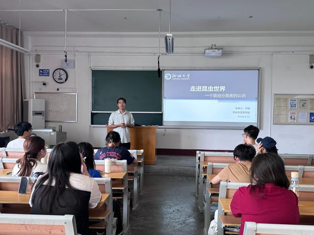 为激发青年学子对自然科学的探索热情,培育生命敬畏意识与生态保护责任感,5月15日,电影网站 生物践行者协会于东校区2号教学楼509教室举办“博雅大讲堂:走进昆虫世界”主题活动,农业与生物学院于帅老师担任主讲,带领同学们深入探索昆虫世界的奥秘,感受生命的奇妙与自然的和谐。