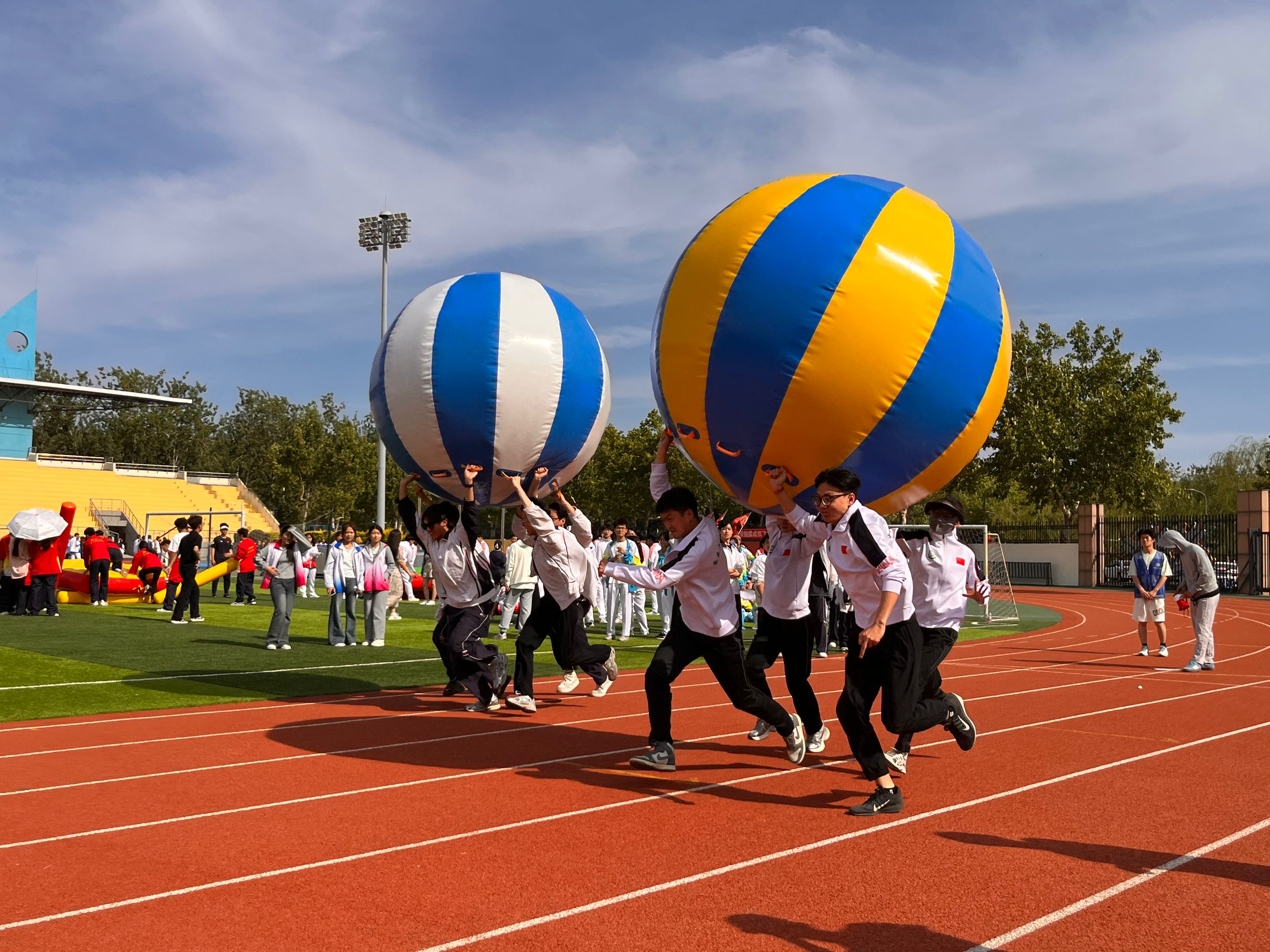 活动现场气氛热烈,共设置了旱地龙舟、击鼓颠球、鸿运通天、长条毛毛虫、滚滚向前以及球类大作战六项融趣味性与挑战性于一体的比赛项目。每个项目都紧密关联个人与团队,引导学生体验情绪管理、压力释放、人际沟通和信任建立等心理过程,实现个人成长。