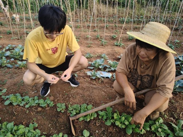 在村头的农具修缮点,有着四十余年务农经验的张大爷正在打理犁具。同学们围上前,观察他如何根据节气调整犁铧深浅——为即将到来的秋分种麦做准备,犁铧入土深度比夏季耕作加深了近5厘米。张大爷介绍,这是为了让麦根在寒冬前扎得更深,而“白露早,寒露迟,秋分种麦正当时”的农谚,正是祖辈根据当地气候与节气总结的最优播种时间。同学们一边记录不同节气对应的农具使用细节,一边用手触摸土壤,感受节气带来的湿度、温度变化对农耕的影响。