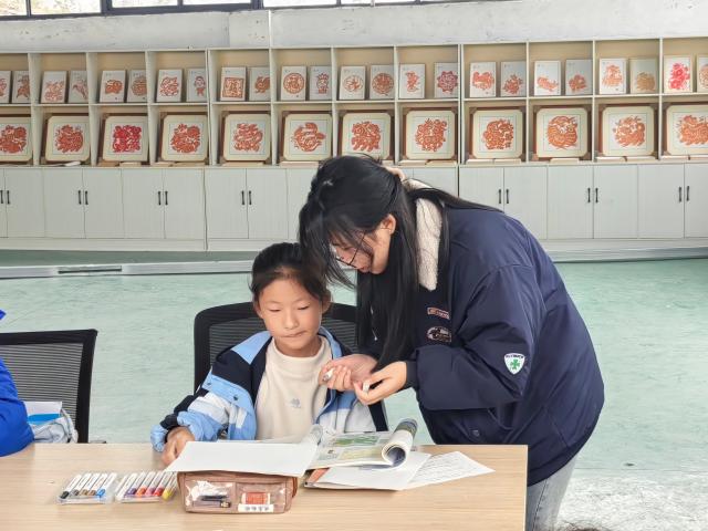 每位志愿者都全身心投入,不仅针对性地解答作业中的问题,还引导学生掌握高效学习方法,现场学习氛围浓厚而温馨。上午的作业辅导环节中,志愿者们迅速与初一学生结对。面对数学难题的困惑、语文阅读理解的疑问,志愿者们结合自身学习经验,以通俗的讲解、细致的推导帮助学生梳理思路,鼓励了学生主动提问、大胆表达。午后,石膏娃娃DIY环节正式开启。志愿者们提前准备好空白石膏娃娃、染料与工具,先向学生演示调色技巧与染色步骤,讲解如何搭配色彩让娃娃更生动。活动中,学生们发挥想象力,有的绘制卡通形象,有的设计个性图案,遇到配色难题时便向志愿者请教。大家还主动分享不同颜色的染料,在互相帮助中完成作品。看着亲手染色的石膏娃娃逐渐成型,学生们脸上满是成就感,现场充满欢声笑语。