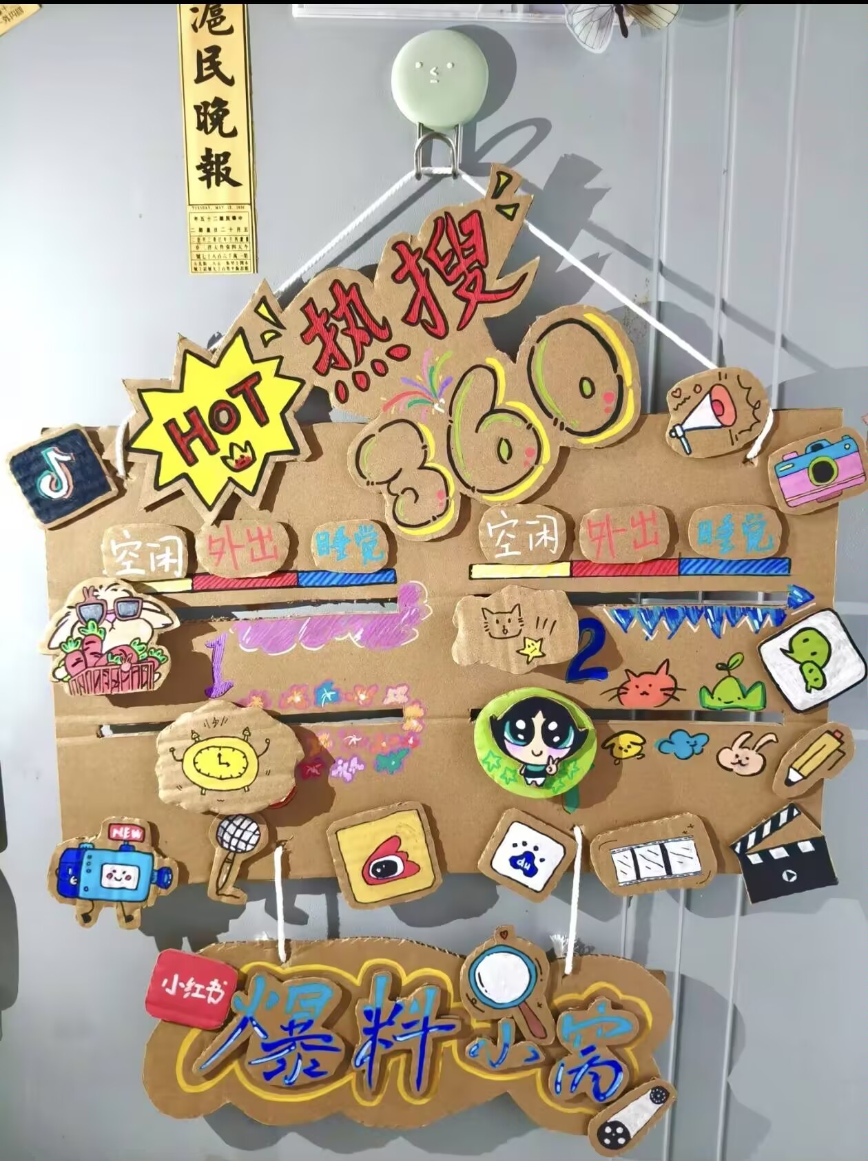 本次活动以宿舍门牌为载体,鼓励同学们以笔绘心,将情感、共识与个性融入作品,打造具有宿舍特色的“视觉名片”。活动开展过程中,各宿舍踊跃参与,围绕“创意+个性+温暖”主题进行创作。同学们积极思考,充分发挥想象力、创造力与动手能力,将专业特色、成员个性特点与兴趣爱好等元素巧妙融入设计:有的以“专业应用”为主体,在有限的空间中绘制出专业在不同方面的应用场景,展现专业风采;有的融入环保理念,利用废旧材料搭配手绘,让作品兼具创意与实用性;还有的以成员个性为基础,绘制出一幅形象化的“室友大合照”,展现室友情谊。最后,通过线上展示、线下投票的方式评选出了“最具温情奖”“创意先锋奖”等作品,既增强了活动影力,又将宿舍文化与创新意识深入同学们的内心。