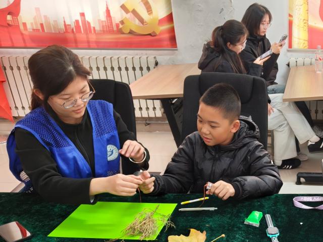 理论讲解结束后,活动进入手工制作环节。志愿者们带领小朋友用纸板、粘土、树叶等材料制作拼贴画,既锻炼了孩子们的动手能力,也让大家在制作中懂得利用废旧材料、爱护环境。活动尾声,小朋友们展示自己的作品,还和志愿者合影留念,定格下欢乐的瞬间。