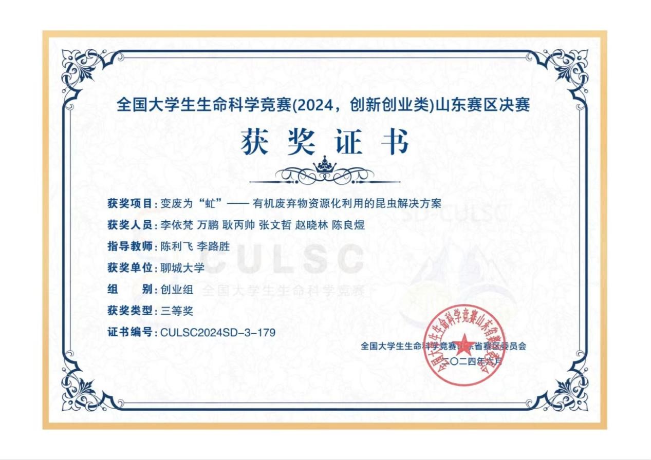 电影网站 李依梵同学在全国大学生生命科学竞赛(2024,创新创业类)山东省赛区决赛中荣获三等奖,对该获奖同学予以祝贺表彰。